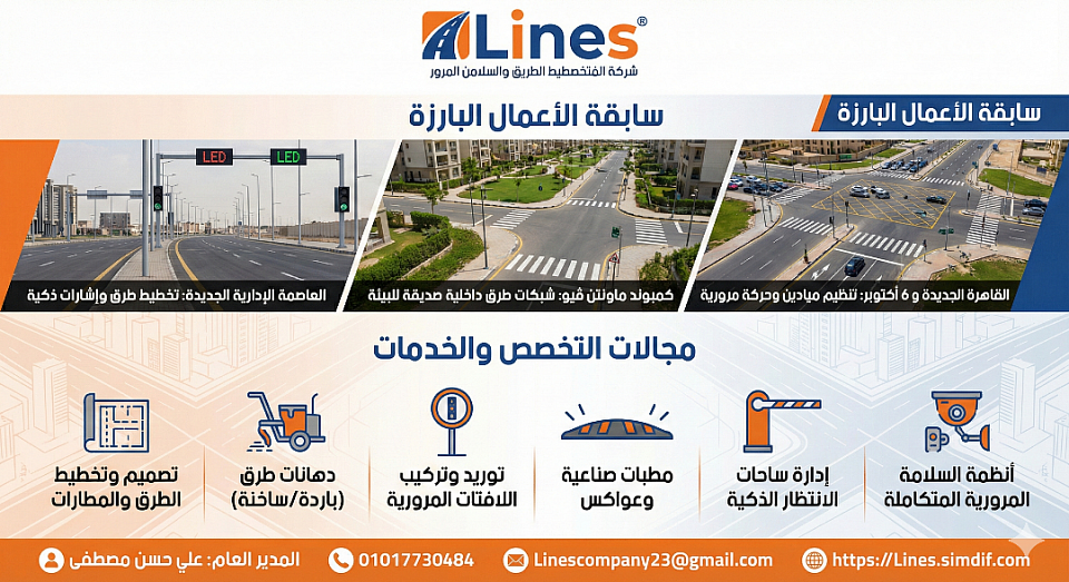 تأسست شركة لاينز بهدف رفع جودة الطرق وتعزيز السلامة المرورية. تتمتع الشركة بخبرة واسعة في تنفيذ مشاريع تخطيط الطرق عبر مختلف محافظات مصر، بما في ذلك العاصمة الإدارية الجديدة، القاهرة، ومحافظات أخرى مثل المنوفية، قنا، سوهاج، ومطروح¹.مدينة الشيخ زايد